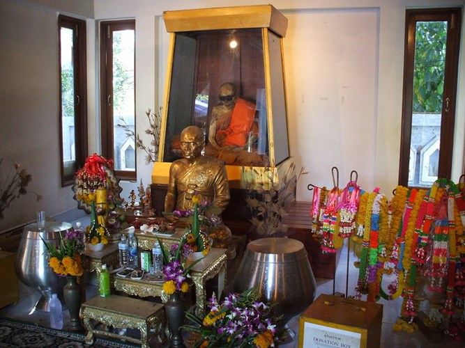 Các nhà sư trong chùa Wat Kunaram đã giữ thi hài của ông lại trong một hộp kính được đặt trang trọng trong chùa.